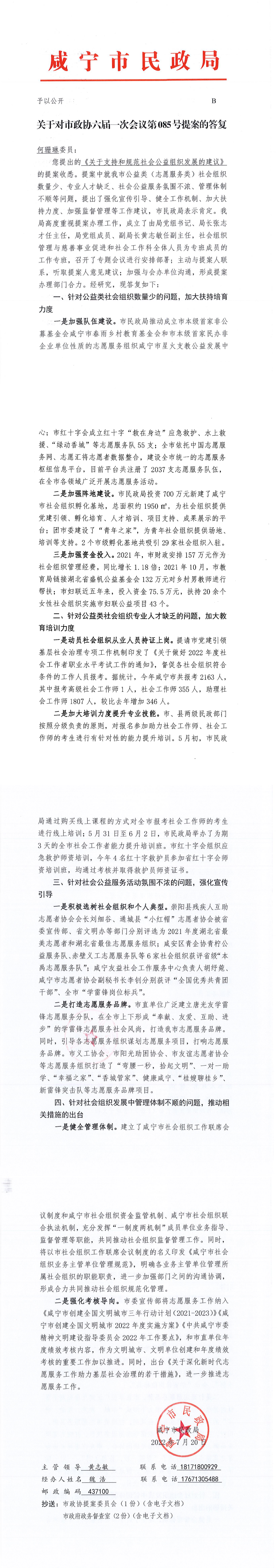 名       称: 关于对市政协六届一次全会第085号提案的答复 发布日期: 2022年10月31日