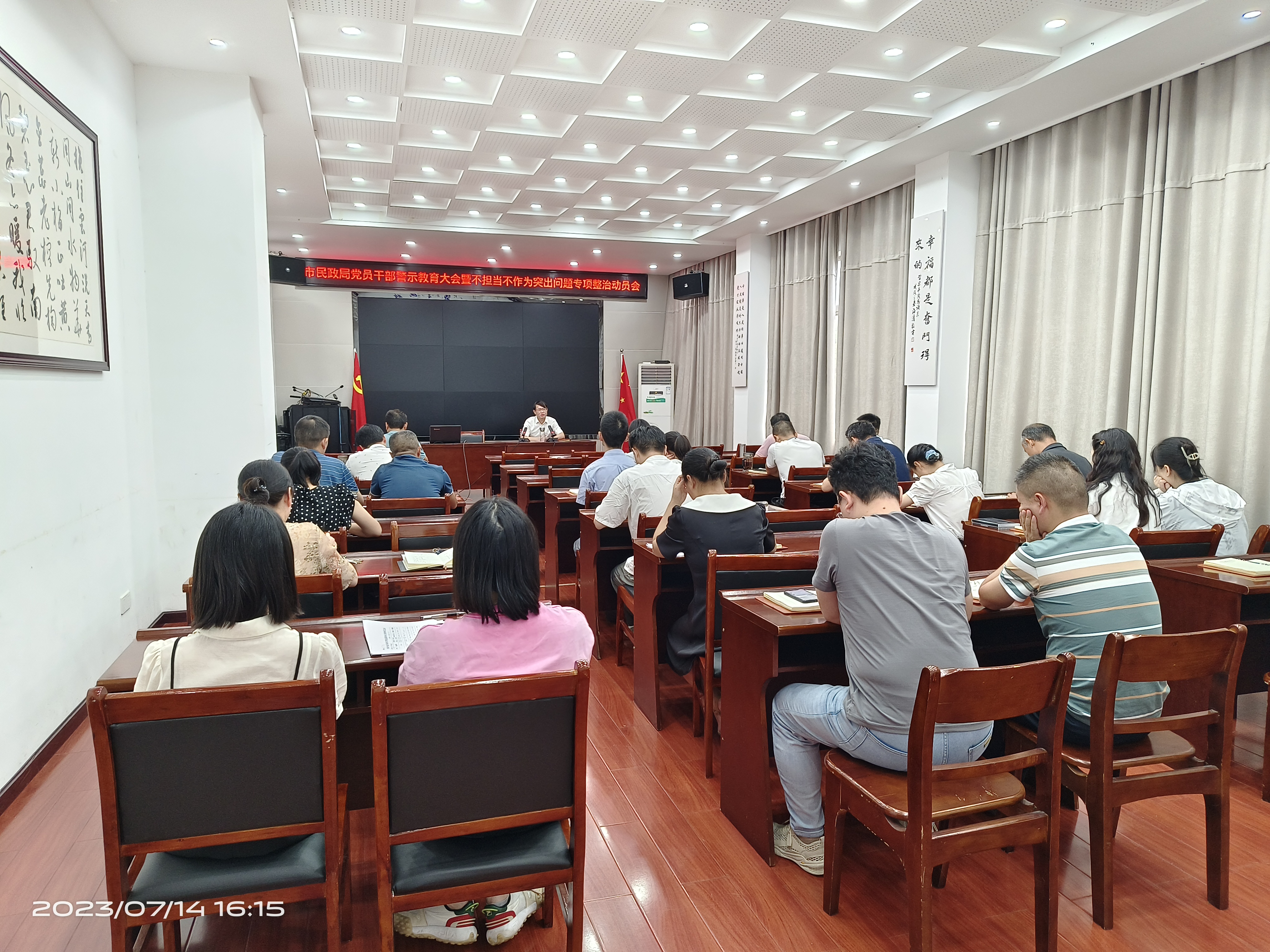 为深入推进党风廉政建设宣传教育月活动,7月14日,六合彩资料网-六合彩资料大全 召开党员干部警示教育大会暨不担当不作为突出问题专项整治动员会,局党组书记、局长张志才同志讲廉政党课,进行集体廉政谈话,局机关及二级单位全体党员干部参加了会议。